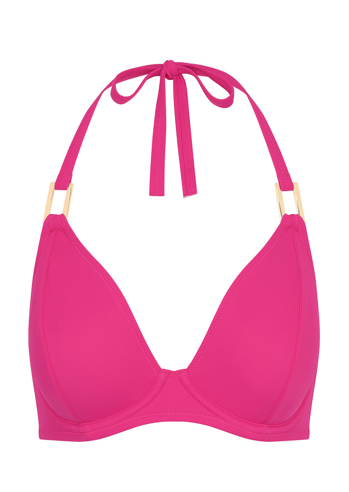 Fuller Bust Boudoir Beach Hot Pink Underwired Halter Bikini Top, D-GG Cup Sizes
