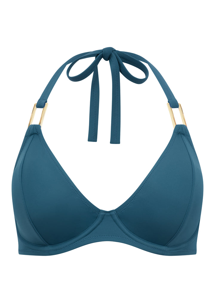 Fuller Bust Boudoir Beach Seaport Blue Underwired Halter Bikini Top, D-H Cup Sizes