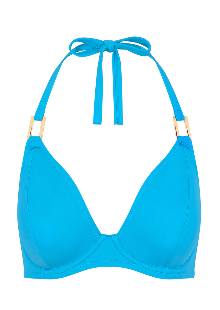 Fuller Bust Boudoir Beach Vivid Blue Underwired Halter Bikini Top, D-GG Cup Sizes