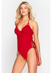 Fuller Bust Icon Red Underwired Halter Swimsuit, DD-G Cup Sizes