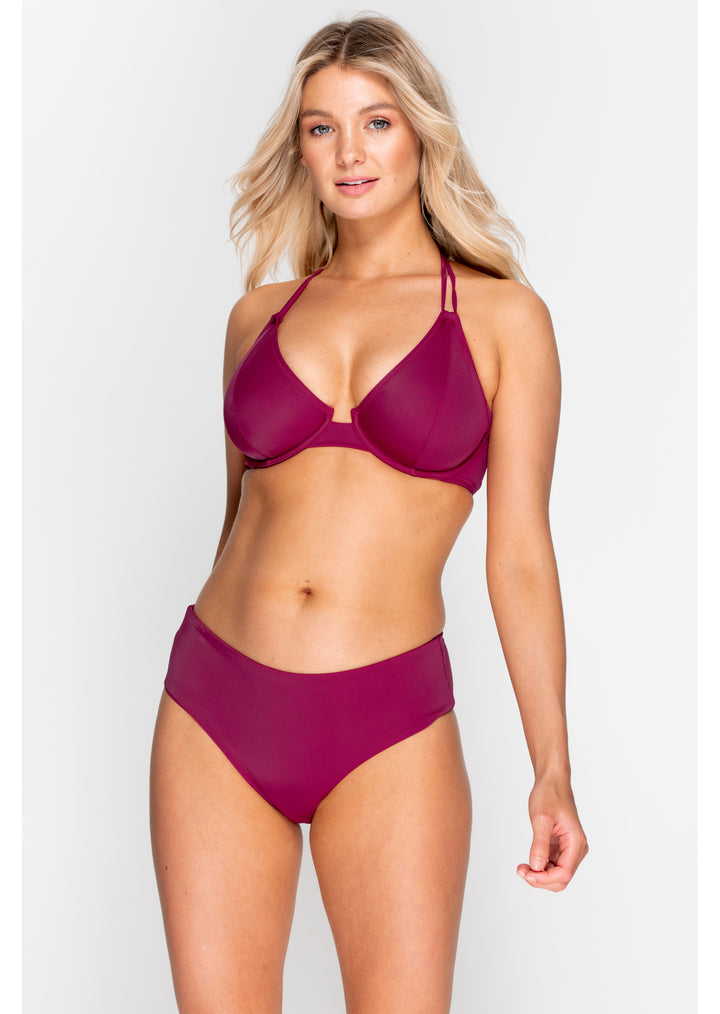 Fuller Bust Dune Dark Fuschia Underwired Halter Bikini Top, D-GG Cup Sizes