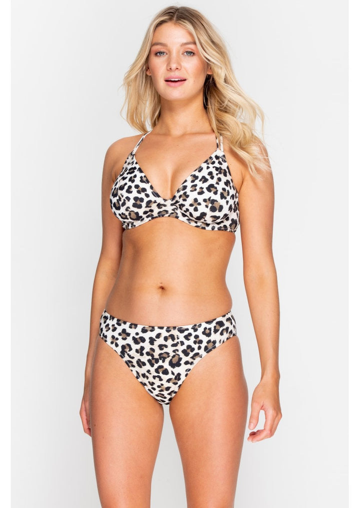 Take a walk on the wild side with our Vegas bikini top. This halter neck underwired swimwear top is designed for the fuller bust, in D-GG cup sizes. Available in a soft animal print fabric which has been sourced from Spain.